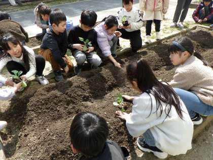 来年の理科の授業に向けて、キャベツを植えました。