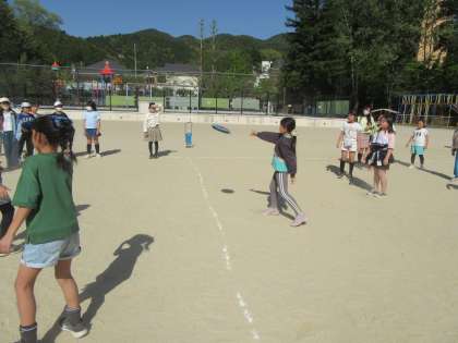 学年でフリスビードッジをしました。初めての学年の取組ということで,張り切って取り組む様子が印象的でした。