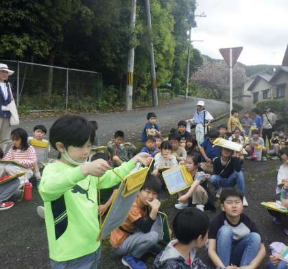 「森ばっかり!」「田んぼと畑もある!」と坂原の自然を楽しみながら探検できました。
