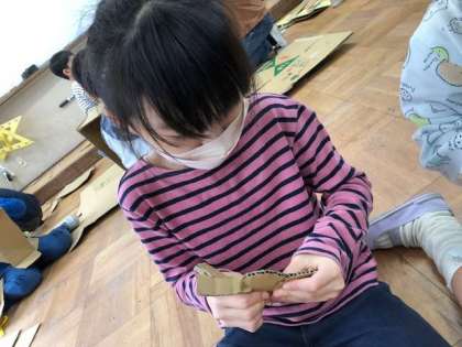 活動が進んでいくと想像が広がりをみせます。大きいものから小さいものまで、道具の扱い方に慣れて上手に切れるようにもなりました。