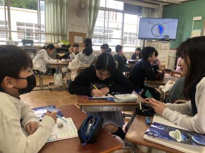 友達のことを理解するためのインタビューの練習を行っています。友達の知らなかったことを引き出すために質問などを考えています。