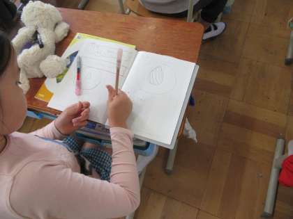理科の学習でヒョウタンの種の観察を行いました。ヒョウタンの種は思っていた種の形や色と全く違って,子どもたちは興味津々で観察に取り組んでいました。これから,1年を通してヒョウタンがどのように成長していくかを観察していきます。
