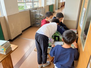 今日は、3年生の何人かが、みんなの読む本がばらばらになっていることに気づいて、協力して片づけていました。