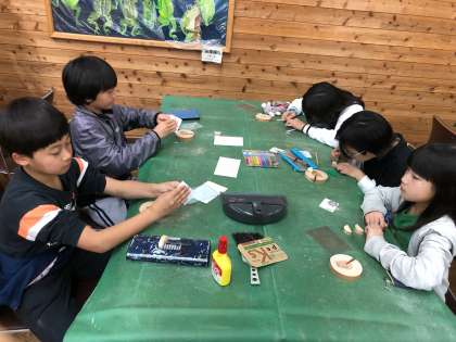 下山後、休憩してからウッド写真立て作りが始まりました。
