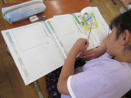 4年生の道徳の学習で,自然を大切にすることについて考えました。コンクリートの割れ目からでも,人に踏まれても頑張って生きている植物がいる一方で,人間は便利な世の中を作るために,自然を壊し続けています。自然にとっては生きづらい現代の環境の中で,今自分にできることはないかなと,一生懸命考えることができました。