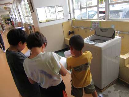 4年生の社会科で,蛇口探しを行いました。学校ではどこでどれだけの水が使われているのかを調べました。