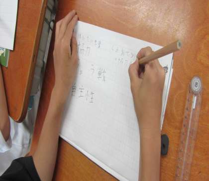 若狭の宿泊学習事前学習2回目,今回は,宿泊学習のおおきな目標を考えました。自分たちが宿泊学習を通してつけたい力を一生懸命考えることができました。