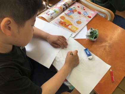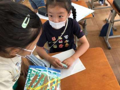 ワリピンを使って工作をします。回転する動きを生かして何を作るか考えています。・