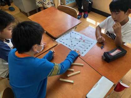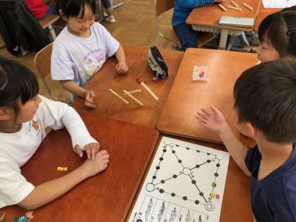 今日はおとなり韓国の文化を知る学習をしました。知ってるものと言えば・・・キムチ!焼肉!冷麺!などやはり食べ物が多かったです。授業の後半にはユンノリ遊びをしました!