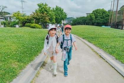 遠足に行ってきました。晴天に恵まれ、子どもたちも笑顔で出発です。