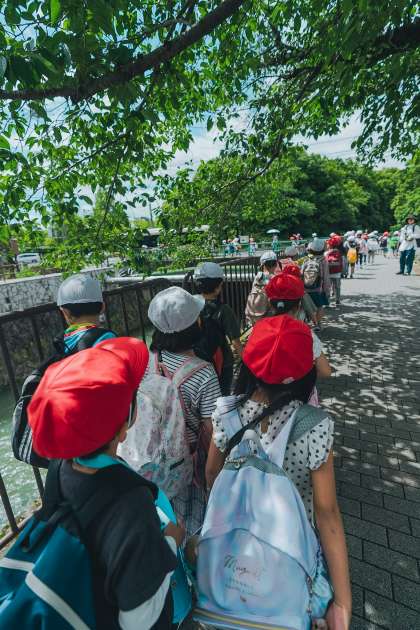 「車の方は私が歩くね。」など、1年生を守るように歩いてくれている2年生も。