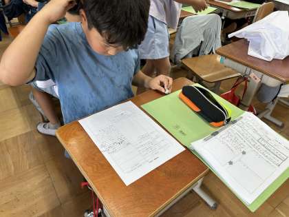 今日から係活動での取組がはじまりました。こちらはリーダー・保健係の様子です。出発式や集いの言葉を考えたり,係のページに乗せる内容を考えたりしています。