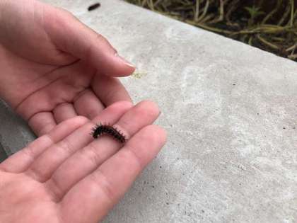 理科では現在、モンシロチョウの幼虫を育てています。子ども達は生き物を育てることの大変さや、成長していくことを見られる嬉しさに触れています。そこから他の虫や生き物にも興味をもってくれています。今日は体育館前にツマグロヒョウモンという蝶の幼虫が大発生していました。トゲがあるように見えますが毒はありません。身を守るためにこのような姿をしていると考えられています。3年生のみんなは「可愛い!」と言ってじっと観察していました。