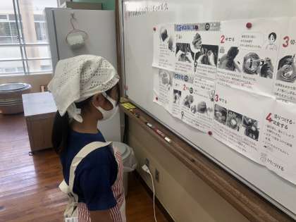 時に調理工程を確認しながら学習を進めています。ひとつひとつの工程に心を込めているのが伝わってきます。