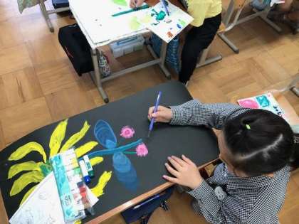 「大きな花」が描きたいということで、画用紙を2枚くっつけています。