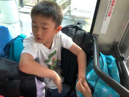 まずはバスに乗ります。みんなの荷物を座席に置いてくれています。やさしさです。