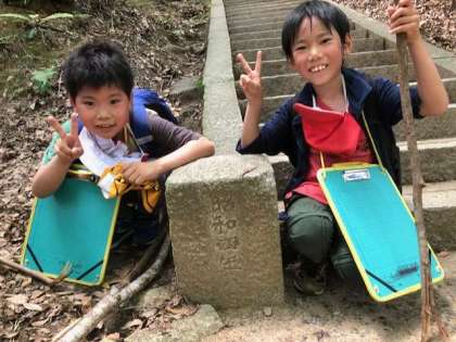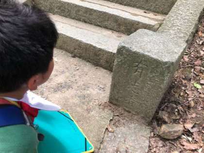 あともう少しで!というところに来て階段が出現!よく見てみると何か字が掘ってあることに気付きました。「有志者」「昭和四年八月」という文字でした。昔、この登山ルートに有志の人たちが、みんなが登りやすいようにこの階段を作ってくれたのかなぁ、と言いながら歩いていました。