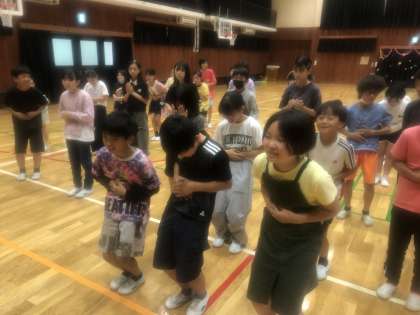出し物ではキャンプファイヤーで盛り上がったゲームもします。これは何のポーズでしょうか。
