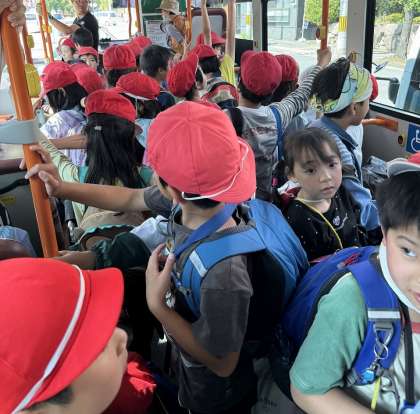 バスにしっかりつかまってあと少し!頑張れ!
