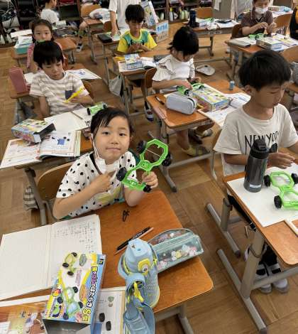実験に使う車を組み立てました。子どもたちはとても楽しんでいる様子でした。