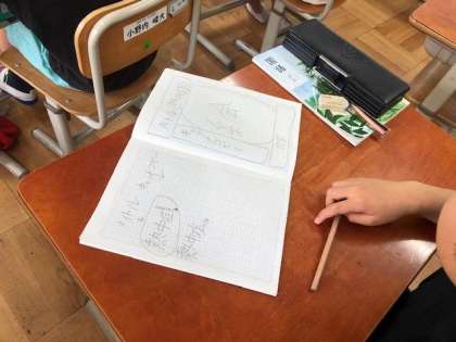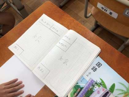 今日はまず「わりつけ」について学習しました。ポスターのレイアウトのことですね。どこに何を書くかを考えました。
