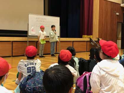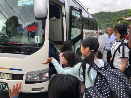 出発式では、この宿泊学習が有意義な時間になるように、4年生のめあて「挑戦・協力・思いやり」を確かめました。子どもたちは今日までたくさん準備してきました。それを十分に発揮してほしいと思います!