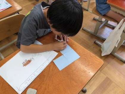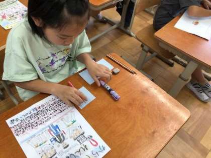 完成したポスターを読み合います。友達のポスターはどこを工夫しているかな?