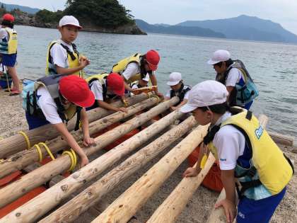 いかだづくりには協力が不可欠です。