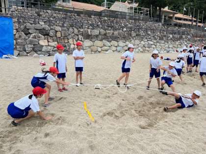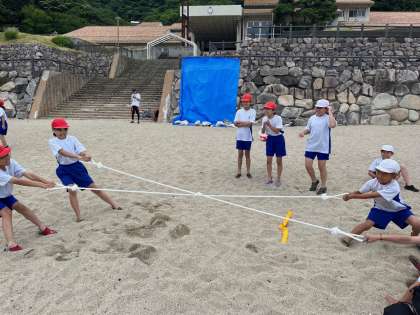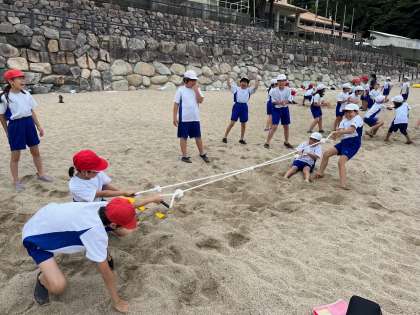 水で重くなった丸太をみんなで協力して片付けた後、残っていたスポーツ大会の最後の種目、エックスロープバトルを行いました。