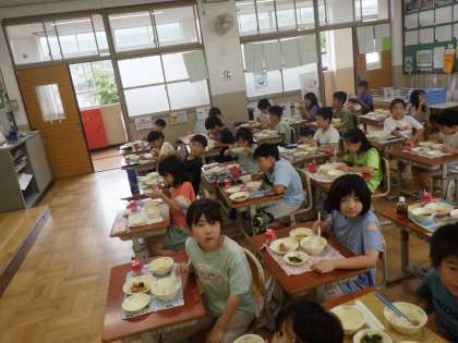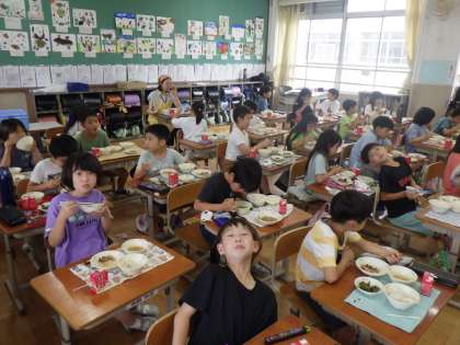 給食時間になりました。もりもり食べて、今日学習した栄養がどんどん体に届いていっています。