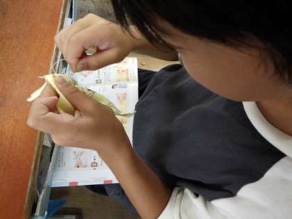 玉結び・玉どめに苦戦しながらも、諦めずに一生懸命頑張っています!!