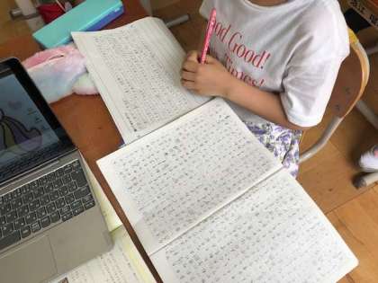 国語科では仕事の工夫を探して報告書にまとめる学習をしています。今日は、これまでに調べたことをまとめました。