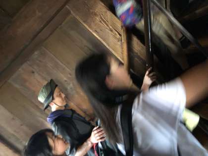 でも、すごく階段が急で子どもたちは恐る恐る、でも素早く上っていきます。