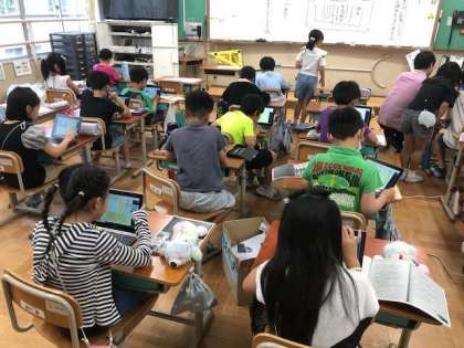 国語科「春風をたどって」の学習はいよいよ単元の後半です。自分で選んだ本のお気に入りの場面を紹介するために、今回はロイロノートを使ってのまとめに挑戦しています。