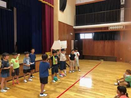1つ目の遊びはドッジボールです。係の人がルール説明をしてくれています。ちなみにプレー中は担当教員が審判をしていたため写真を撮り忘れました。すみません。