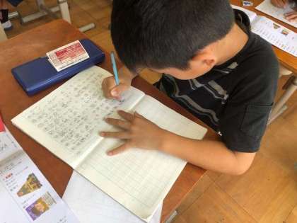 朝学習の様子です。漢字の書き取りをしています。時間になるとモードを切り替えることができています!
