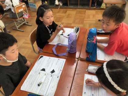 まずは今月の目標について振り返りました。できたところを認め合い、課題は2学期につなげていきます。