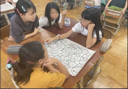 「夏休みすごろく」ではグループでミッションをクリアしながらゴールを目指しました。ミッションの1つである、みんなで「2学期もがんばるぞ」と言う掛け声が教室中に響き渡っていました。