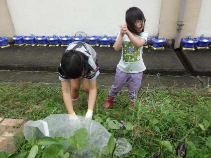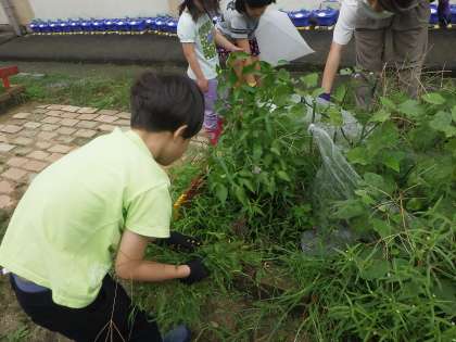 3組の子たちが大切に育て、おいしくいただいた夏野菜も夏が終わりに近づき枯れてしまいました。今日は野菜を抜いて、最後まで自分たちでしっかり終わらせました!