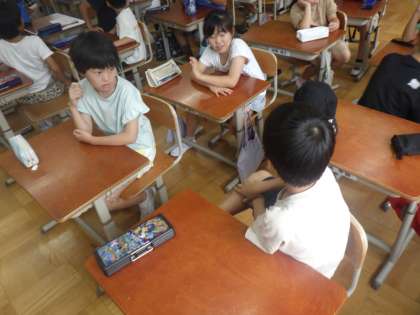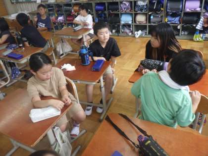 席が近い友だちとじっくり話し合い、どんなことがクラスみんなのためになるかを考えました。きちんとやるためには、自分の仕事を責任を持ってやり切ることや、限られた活動時間で企画して、みんなが楽しめるものを作る必要があるなど意見がたくさん出ました。クラスみんなのためにとても一生懸命考えていました。