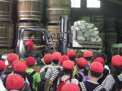 「大きい岩!」「めっちゃ重そう!」と子どもたちは見入っていました。