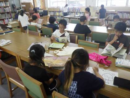 3時間目は図書室に行きました。もう100冊読んで新しい読書ノートを使っている子もいました。