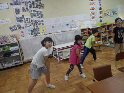 運動会練習、まずは教室で頑張っています!「ちょっとだけがんばってみる」「すきなことをみつけてがんばる」をめあてにみながんばっています!
