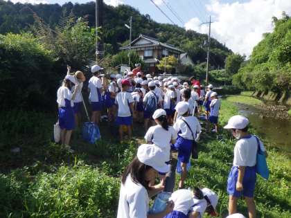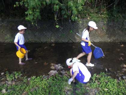 今日の活動の終わりには、捕まえた生き物はみんな川に返しました。