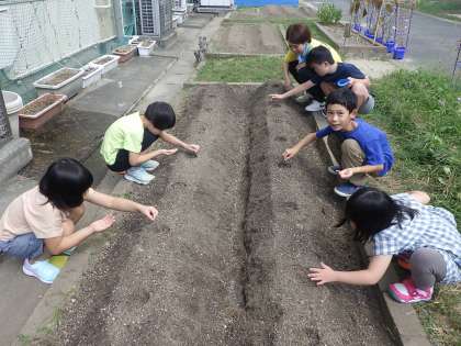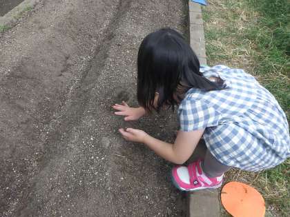 大根の種を植えました。「大きなかぶ」ではなく「大きなだいこん」ですが大きなだいこんを抜くことを楽しみに丁寧に植えました!