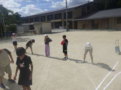 かげ遊びを通して、「太陽と逆に影ができた」「最初は自分の前にあった影が、時間がたつと、右に動いていた」とたくさんの気づきがありました。次の時間は、気づきから、この単元を通して調べることを決めていきます。