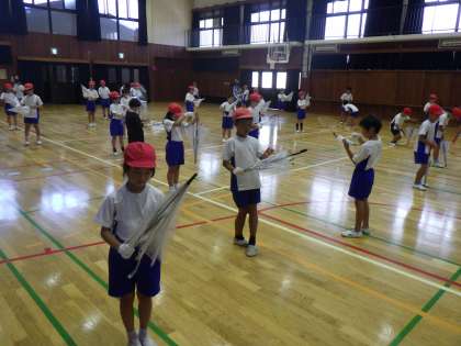 今日は、3年生だけで練習しました。3年生は初めて傘を使った練習です。開け閉めなどきちんとできるかな?