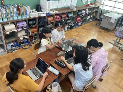 5年生での生活をよりよくしていくための話合い活動を行っています。事前に議題に対しての自分の思いを明確にしてから話し合いに臨みました。活発な意見の交流が各グループから聞こえていきました。