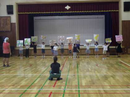 今日の運動会決起会に向けて、体育館でリハーサルをしました。3年生の取り組みを発表する児童と、スローガンを持つ児童の息がぴったり合っていました。本番もとてもうまくいきそうです。