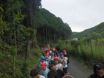 坂原の入口あたりに来ると、さっそく草むらにいる生き物を探しています。